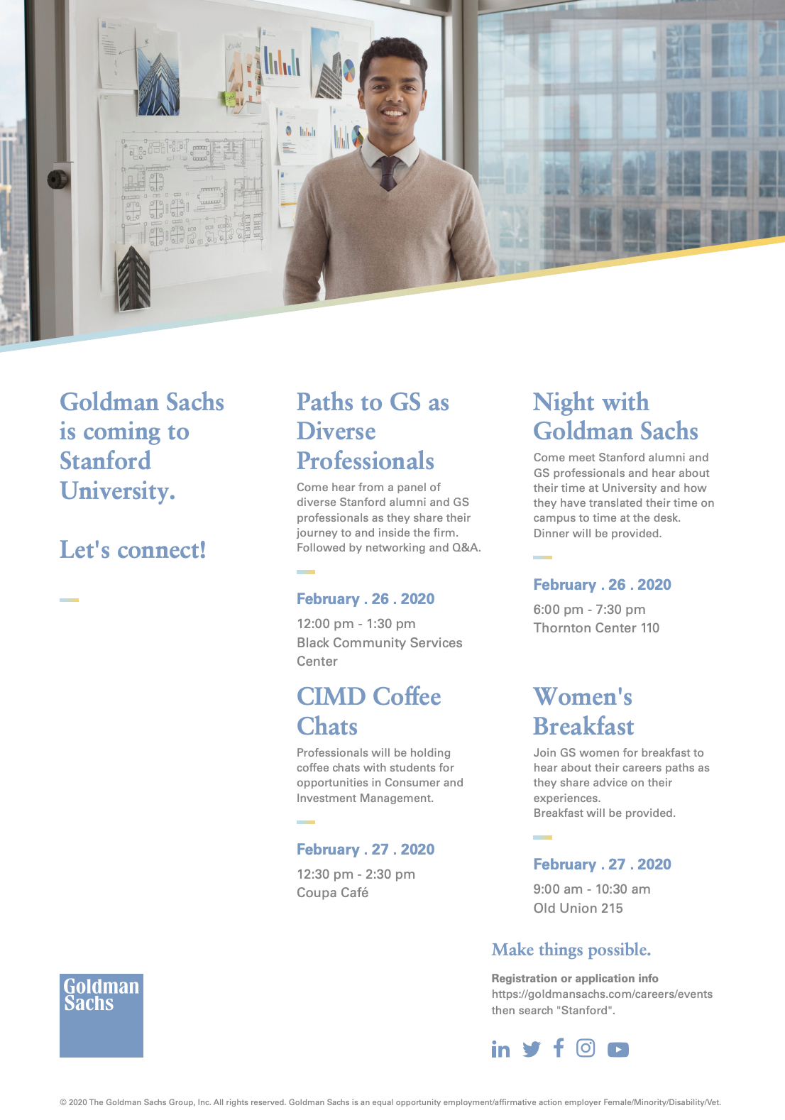 Goldman Sachs Visit Stanford Women In BusinessFebruary 23, 2020Comment Facebook0 Twitter LinkedIn0 0 Likes